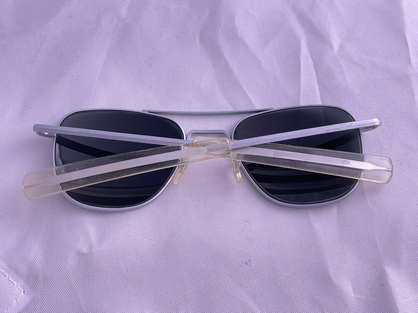 These frames are in great condition they do have some yellowing on the ear rests and nose pads but they are in very good condition the left temple is slightly loose.